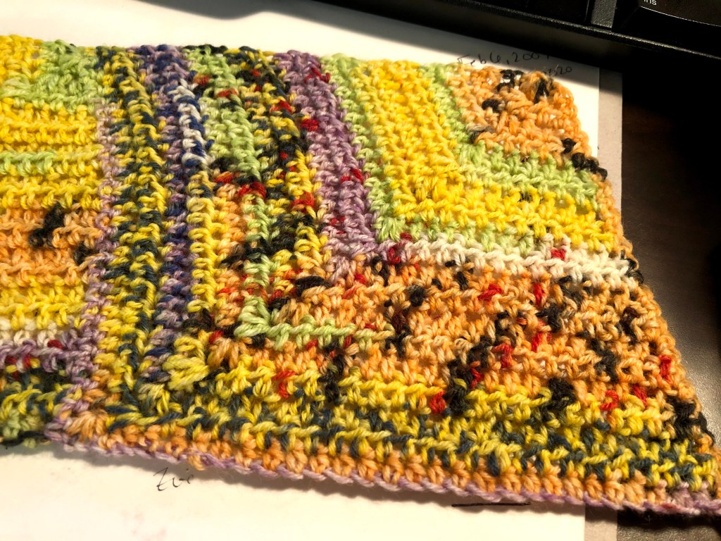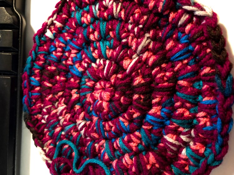 I managed to find a stash-busting project for February. A massive crochet floor pillow/pouf out of my scrap bin. I started with THIS project, the Stash Busting Monster Pouf, from KT and the Squid. But the SC Spike with the increase rounds isn’t lining up (because I worked a row incorrectly back at the beginning). I started again, kinda, but with a SC top, which is proving to be a significantly smaller gauge. But I’m not sure this one in my vision either! I love the texture of the original Monster Pouf, but I don’t want to do all the counting and paying attention required. I’m half considering going up a couple of hook sizes and holding 3-4 strands together. I’m toying with the idea of doing some other circular texture stitch motifs that I’ve seen while perusing Granny Squares this week.
