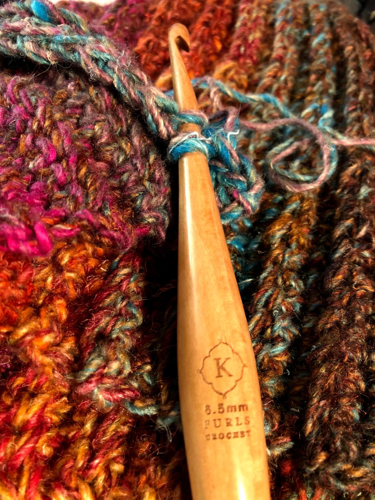 I enjoy working with it. The lack of fatigue was pleasant. I don’t frequently work with size K/6.5mm hooks. Regardless of my perceived speed while using it, this is not a deal breaker. The context in which I crochet is not a race. I’m not a production crocheter. I worked a swatch with a smoother yarn (Knot House Yarns Lickety Split) and my speed was much improved. I usually work with smooth yarns, and the pairing of the smooth yarn and the Furls Streamline Wood Hook should be great.