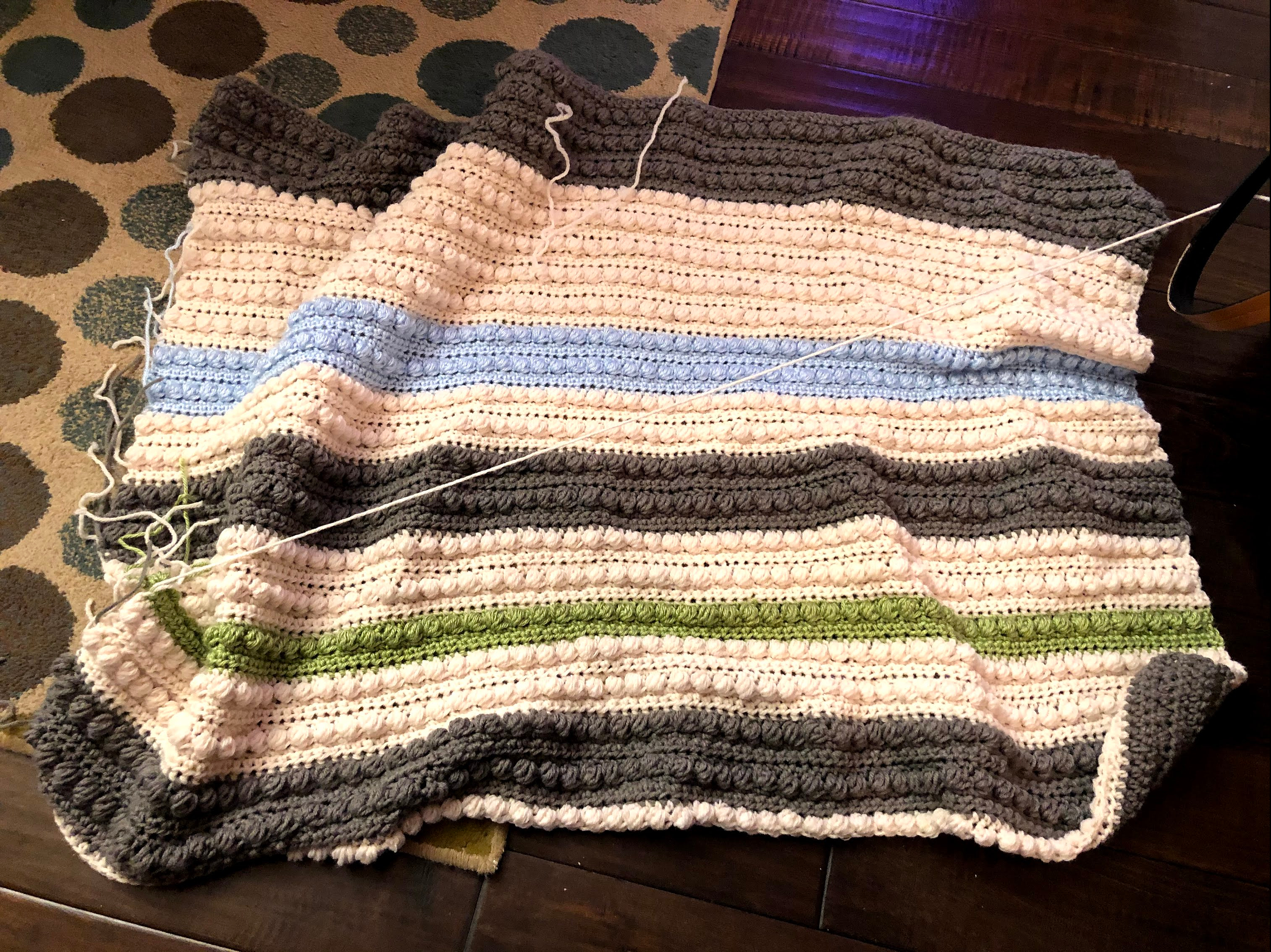 I’m super excited to have made some progress on my socks without a looming deadline, I do have a couple of blankets with a very REAL deadline of 3/21! The first is about 60% done. Insanity obviously gripped me when I thought BOBBLES, over 500 of them, were a good idea for designing two blankets with a deadline inside of a month. I am absolutely capable to completing the commission, although it may be awhile before I can crochet bobbles again!