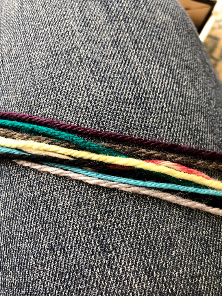 Now knitting with 9 strands at once is great for using a bunch of yarn. But inevitably it gets all tangled. I think a full third of the time spent on the project was removing the biggest tangles! Ball management is rough, but hey, that’s what happens when you just dump the working yarns into a pile and work from the tangle.