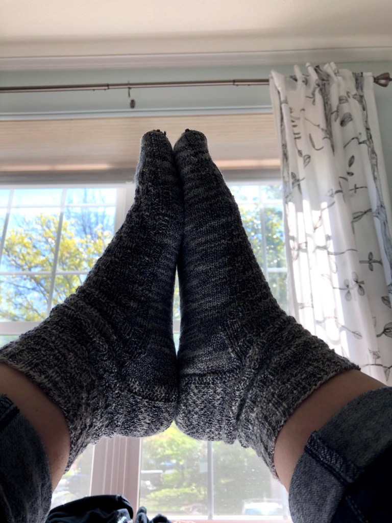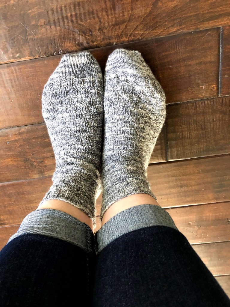 Its been quite some time since I’ve worked on an old WIP. With all the baby blanket crocheting and pattern designing, I’ve had busy hands. Sometimes in the evenings, while my spouse is reading the kids a bedtime story, I work on an easy project that lives in my bedroom. This particular pair of socks were pulled out of hibernation back in 2019 when I found and finished my “Cabled Alaska Socks”.