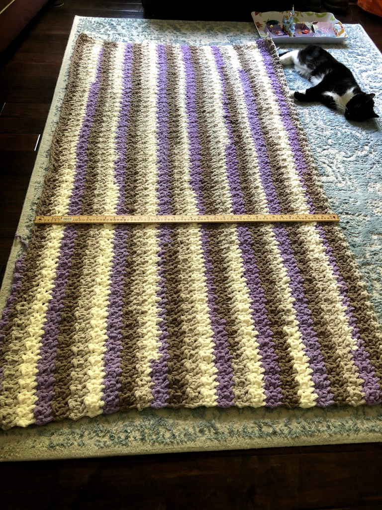 In the meanwhile, I’ve been plugging away on my “Giant Randclaw”. ANNNNND, the 5 balls of Bernat Blanket Stripes I purchased back in July 2019 isn’t going to be sufficient. I have also discovered that this version of Blanket yarn is discontinued. Whomp, whomp!! But no fear, I’m going to flank it in an off-white on either side from the same brand- I am optimistic that it’ll coordinate. I have 2 balls on order that’ll be here next week some time (they were on sale, bonus). This project has no read due date, so whenever I finish it- Cool.
