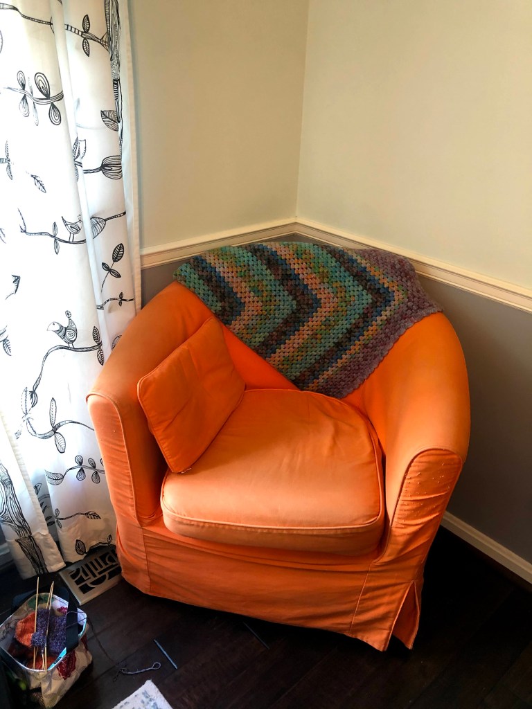 The year was 1999. I was a college freshman. It was Fall. I needed a chair. I went to Ikea, picked out an inexpensive chair and a coordinating cover. The cover was a pale pea green. It moved from apartment to apartment. My first, second, third. A brief move back in with my parents. My next apartment. Then out of state, to two more apartments. I dyed the cover Purple in my bathtub. I was afraid to use dye in my apartment’s tiny stacked washing machine- it was strictly prohibited in my lease (to use dye in the machine). 7 years ago it made a move into our current home. It has been in my office (RIP). The (finished) basement. My bedroom. In 2015 we purchased a new undyed cover and proceeded to dye it orange. It matched my daughter’s room perfectly. Once she moved from a toddler bed to a twin a few years later, the chair moved into the living room. Where it has become my favorite spot to sit. Its still comfortable, after 20 years of heavy use. The legs are a touch wobbly, but as long as you don’t plop or scoot the chair, you would never suspect.
