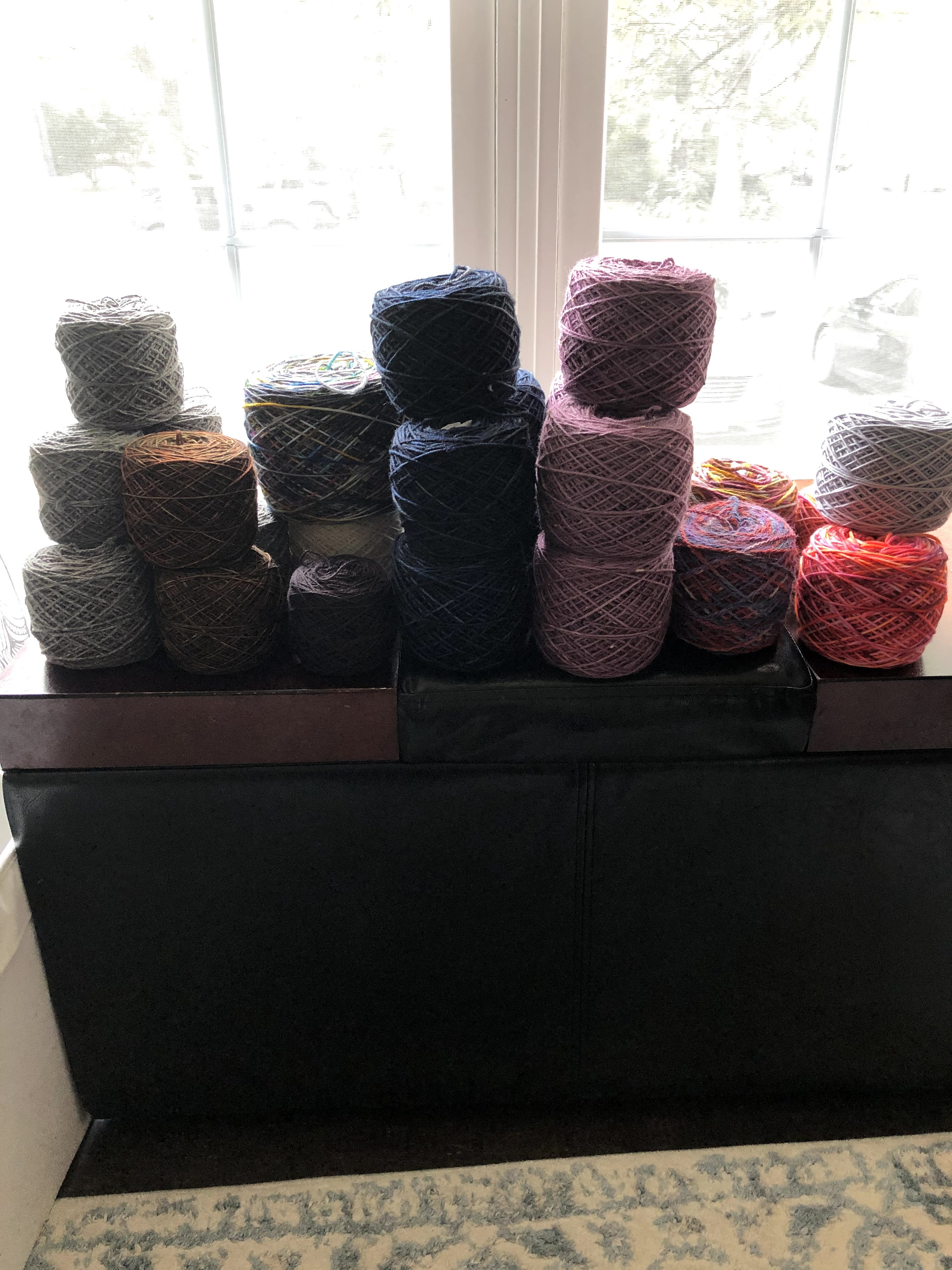 Instead, I wound 30 hanks of yarn into cakes. Yeah THIRTY. I think I worked on it for about 3 (or 4) hours total. 6000 yards (6600 m) of yarn, all ready to go. This is some of my deepest stash, I think I will be more inclined to grab it for upcoming projects.