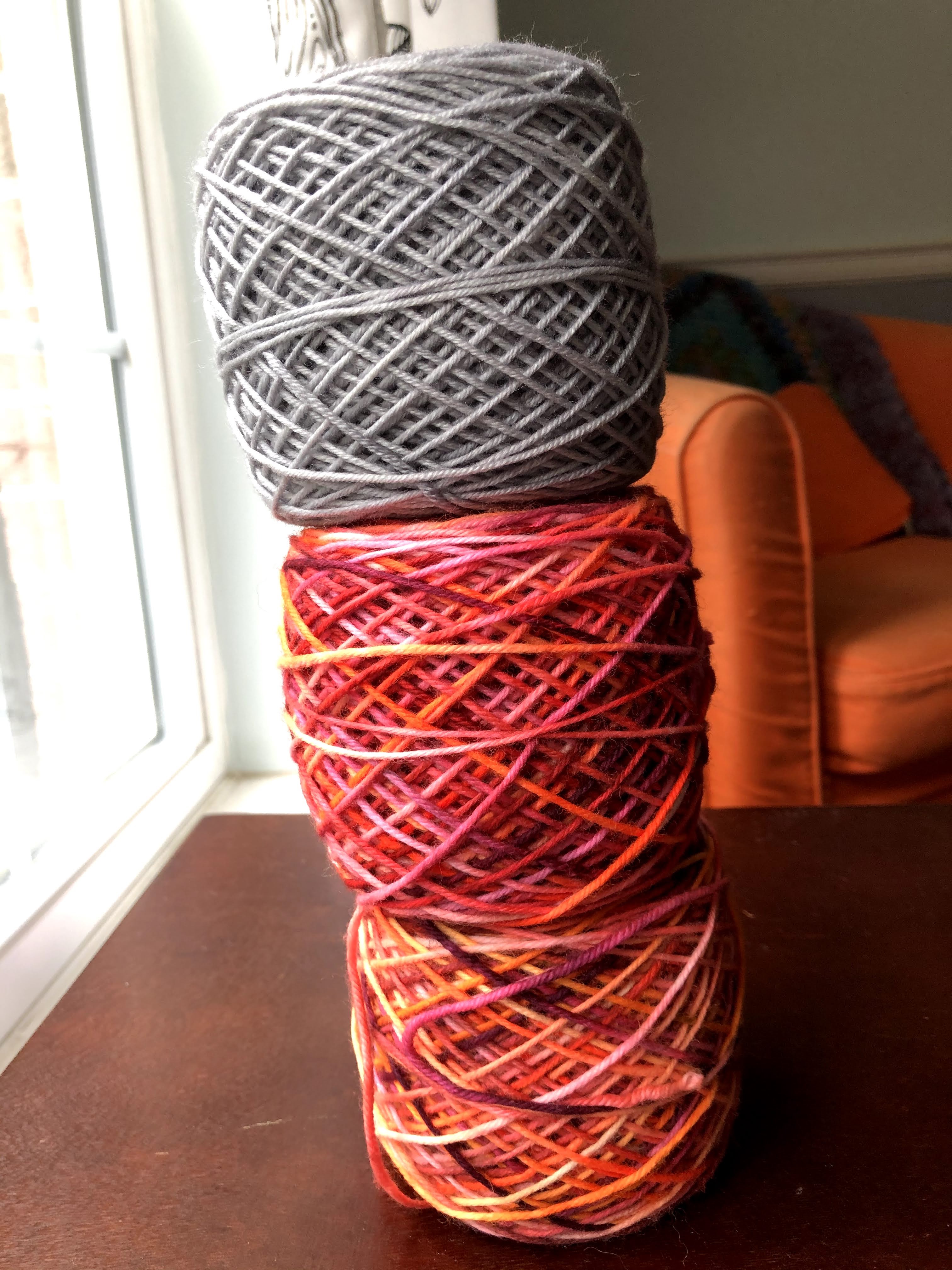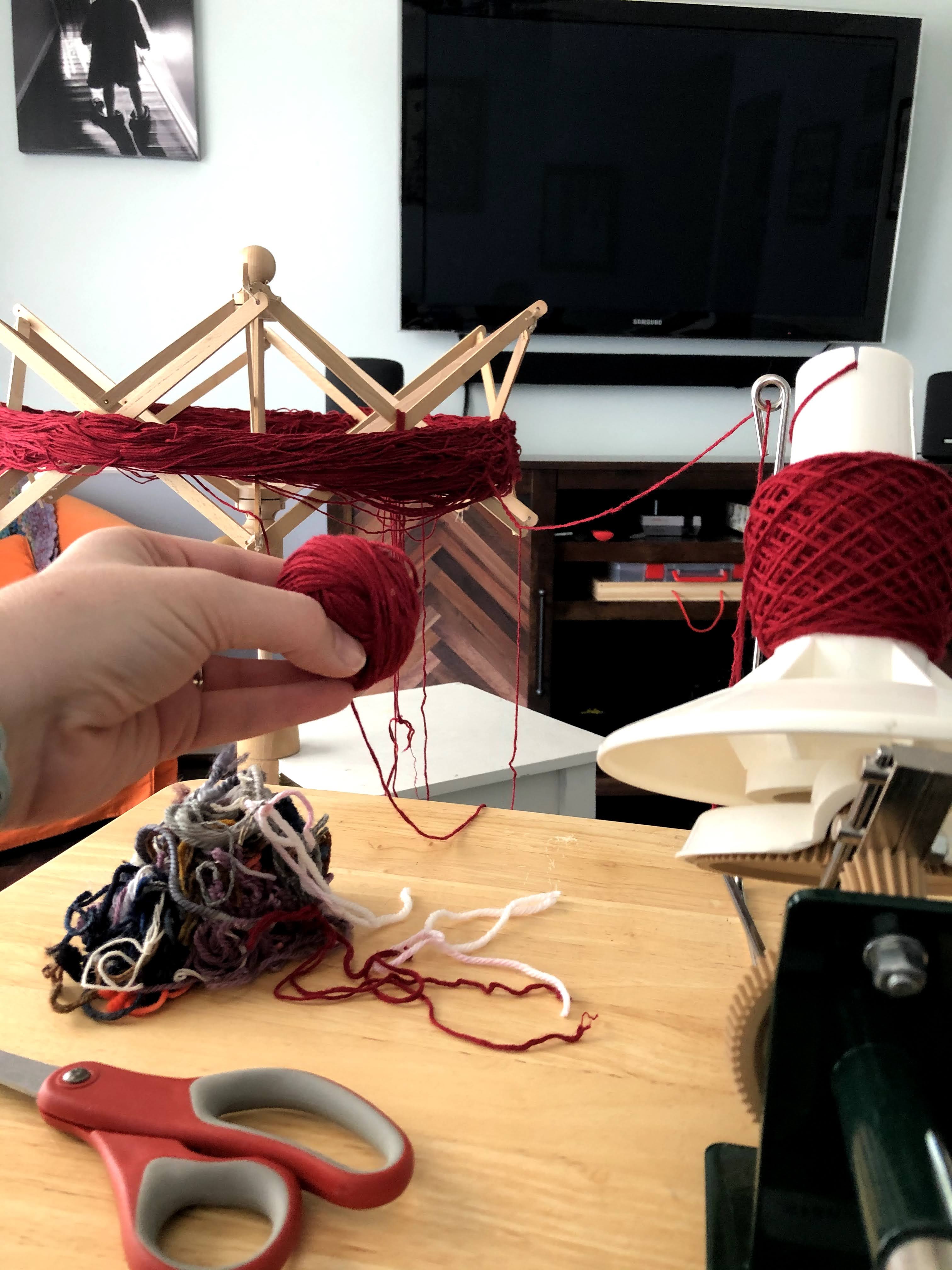 Additionally I decided to finally re-ball from when I frogged the “Clap” (the Clapotis) I was making for my mom back in 2008. Yeah, 12 years this yarn has been languishing. It was a beast to ball! For SOME unknown reason I hanked the yarn from my frogged project held double. Really me of the past, not smart. I wound one by hand, and one on my skein winder then re-wound the ball into a cake for consistency. I have 3 total cakes now, my Ravelry project page says I had 4 skeins of South West Trading Company Bamboo in Red. I have 3… a mystery is afoot.