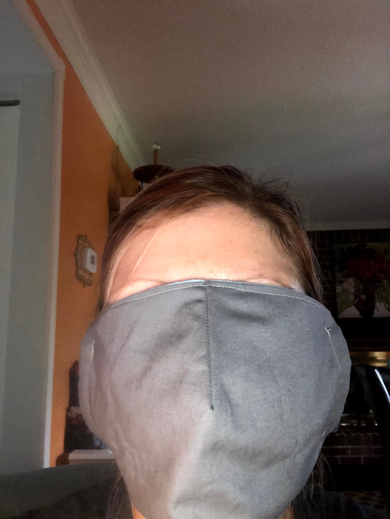 Amusing non-YOP item first. My spouse has lamented that his masks are not the best when he actually has to talk to other people while wearing them. Like they are too short. He does have kinda a longish face. So this morning, I whipped up a boring mask in a bigger size. The pattern is a bit boxy. And HUGE. Yeah, I made the XL size, but I wasn’t expecting it to be so comically large. Below are some pictures of me modeling it. I’m a rather large woman to begin with. Please take this opportunity to laugh WITH me. Its entirely too large for the spouse as well. He was not interested in being photographed.