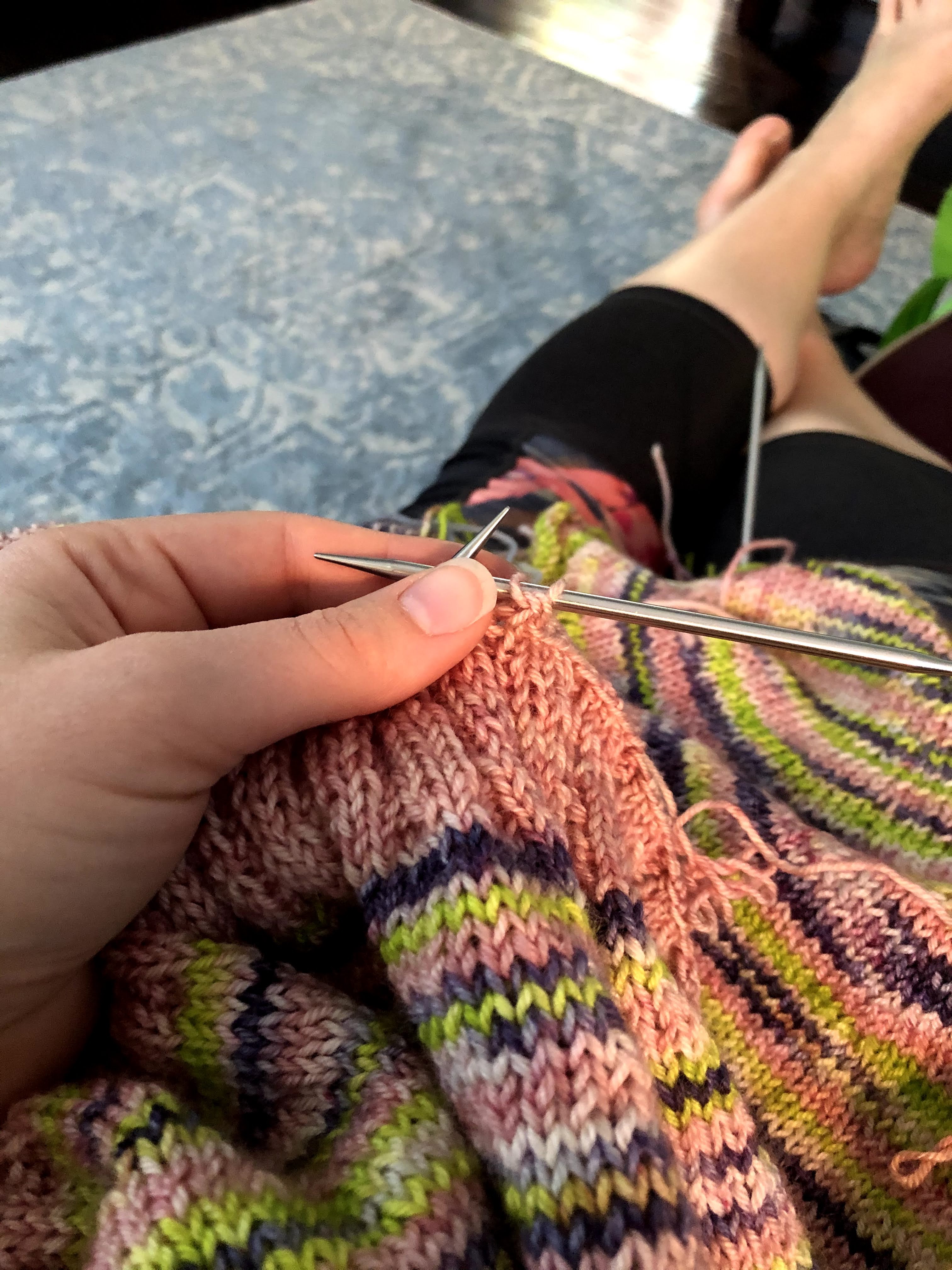 I think sleeves are a perception over reality thing, being SOOOO CLOSE makes the process seem longer than it is. A part of me wants to grab another 4mm needle and start the second sleeve from the opposite side of the balls. Additionally, the sleeves are usually when I start getting antsy to start another project instead of just buckling down and finishing. As with most things, my own worst enemy. 😉