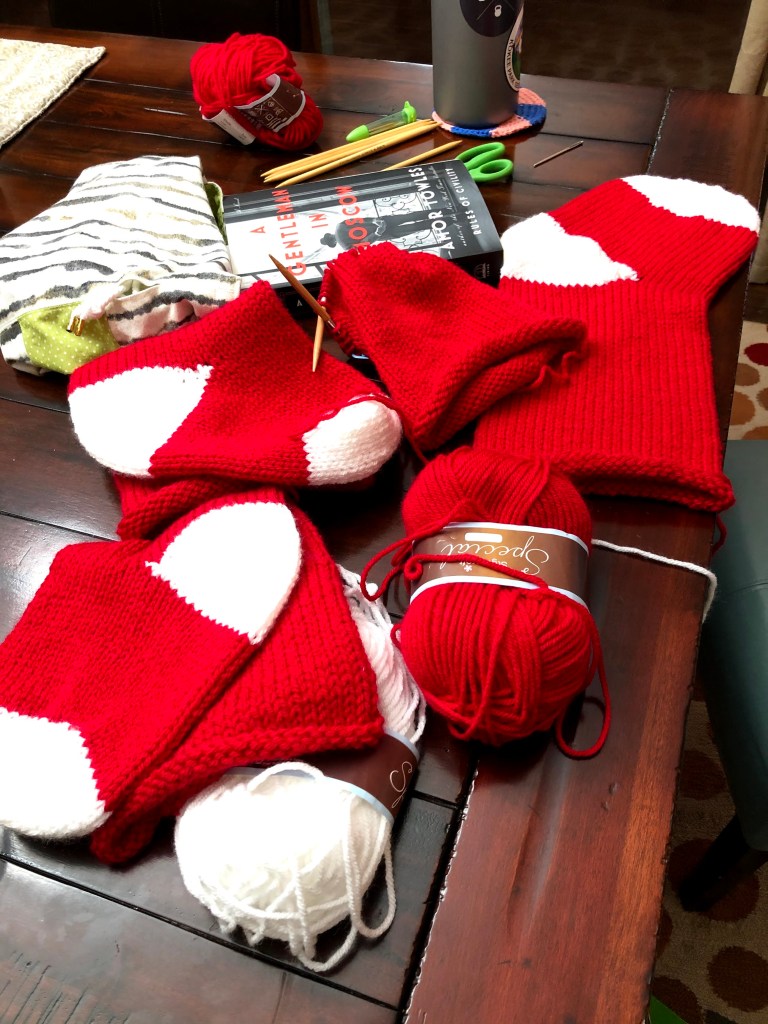 I didn’t actually finish anything last week. I’m working on finishing the 4 Good Family Christmas Stockings and my Cute Fight sweater. Here’s where I am: