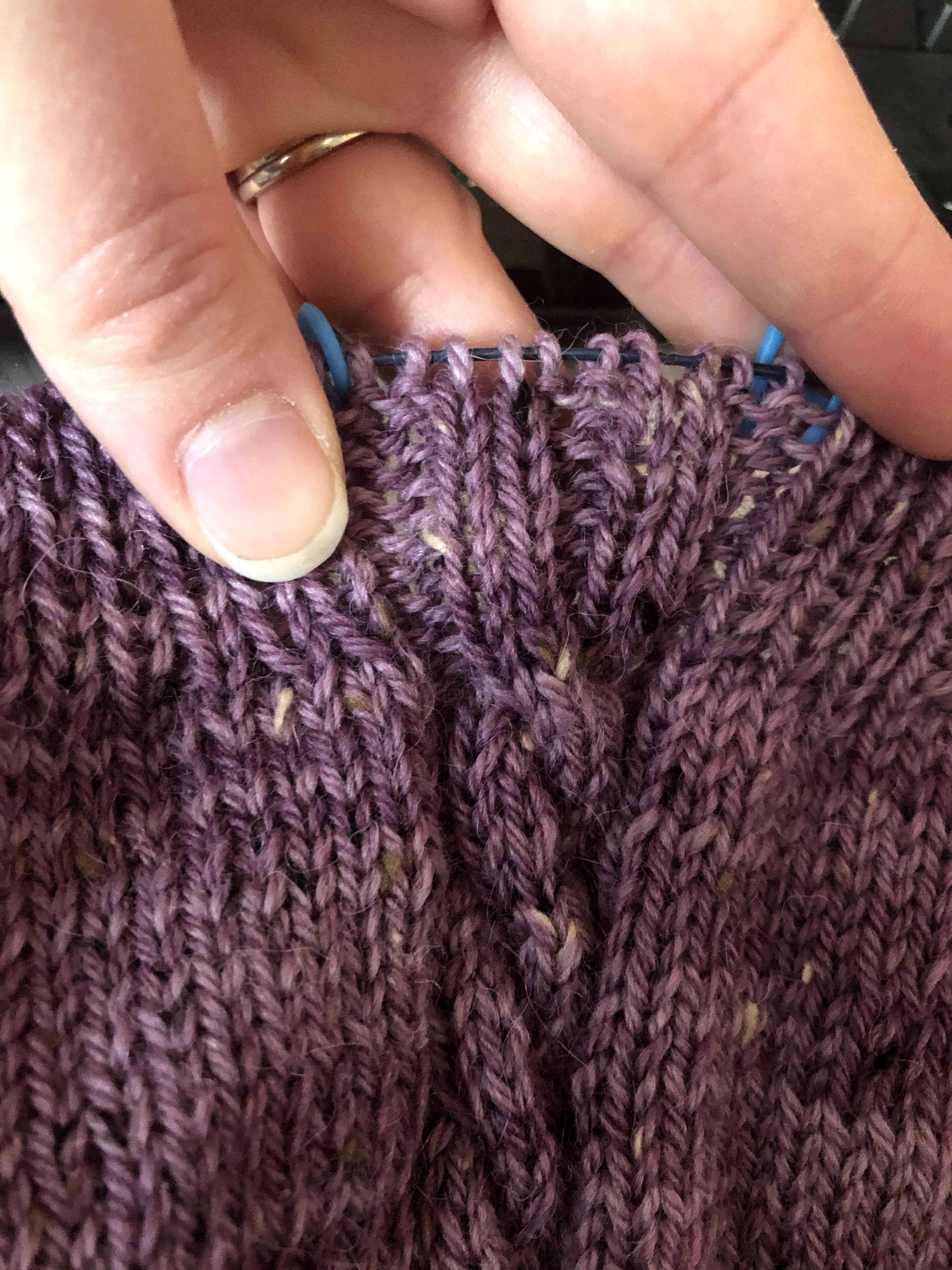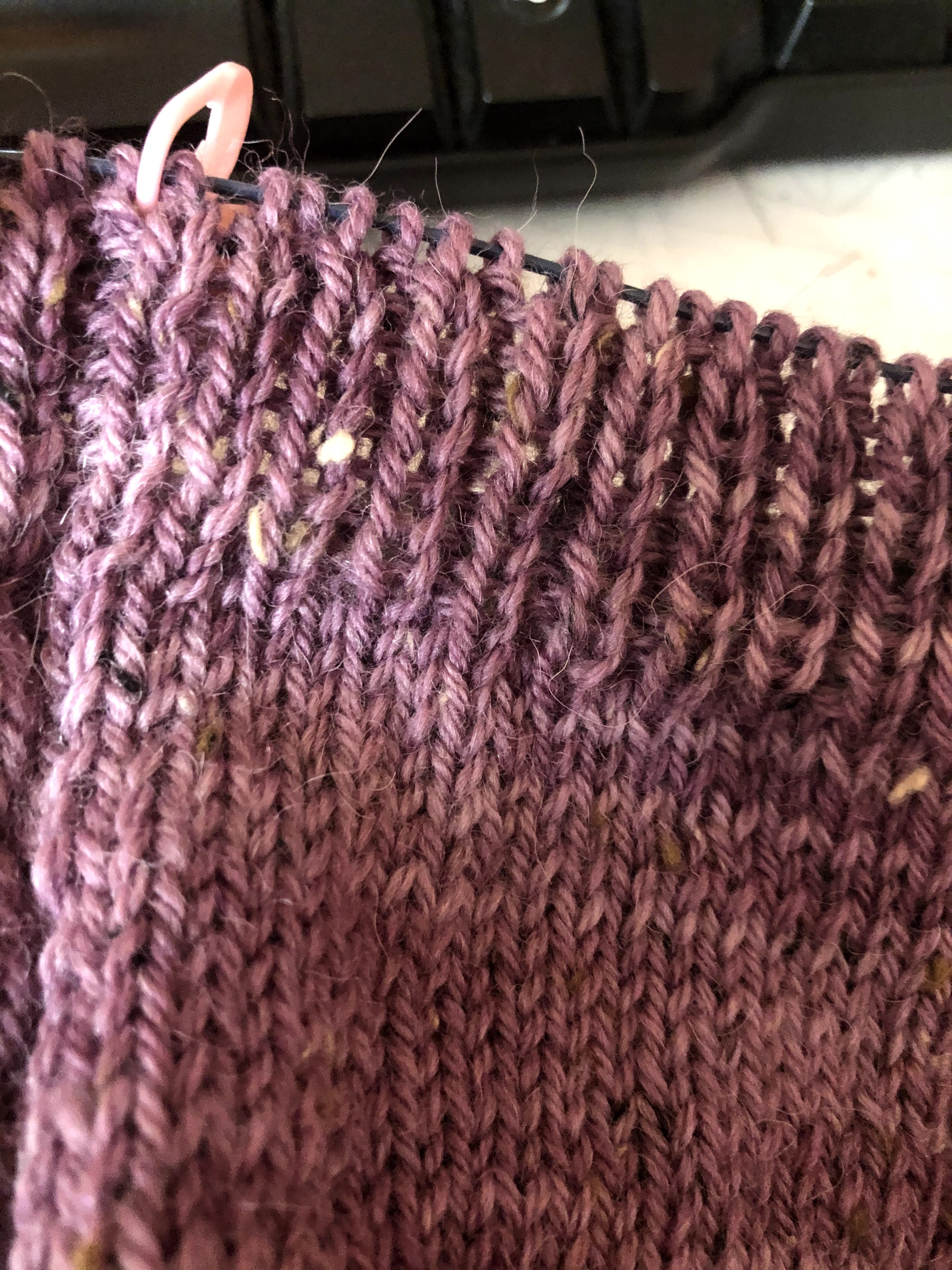 More on the Cardi B saga! As I’ve been lamenting for weeks, I wish I had just ONE MORE SKEIN. But the yarn is old and discontinued and blah blah blah. Some of my problems could have been solved if I blocked my swatch, and I am not about to do that now. Alpaca and alpaca blends are notorious for growing in length. But its not a fixed percentage across the board. I’m going to hope that will give my project a tad more length in the arms and body, so their shortness will be somewhat less noticable.
