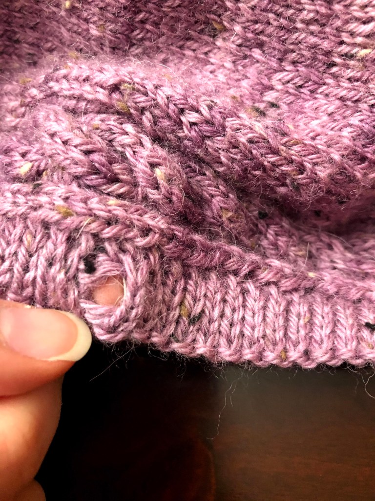 While I love designing my own projects/patterns, I don’t always love deciding what finishing to include. My Cardi B button bands are causing me some consternation. It took me multiple tries to get the first one (a fold-over) to a place I thought I liked. But then I started tacking it together. And now I don’t like it, partially because its TEDIOUS. Which brings me to the 2nd button band which I’m going to try 2×2 ribbing on, fast lays better. I still haven’t decided what kind of button holes. YO or cast-off button holes? Likely the cast-off because the most likely buttons are 7/8″. Designer decisions!!