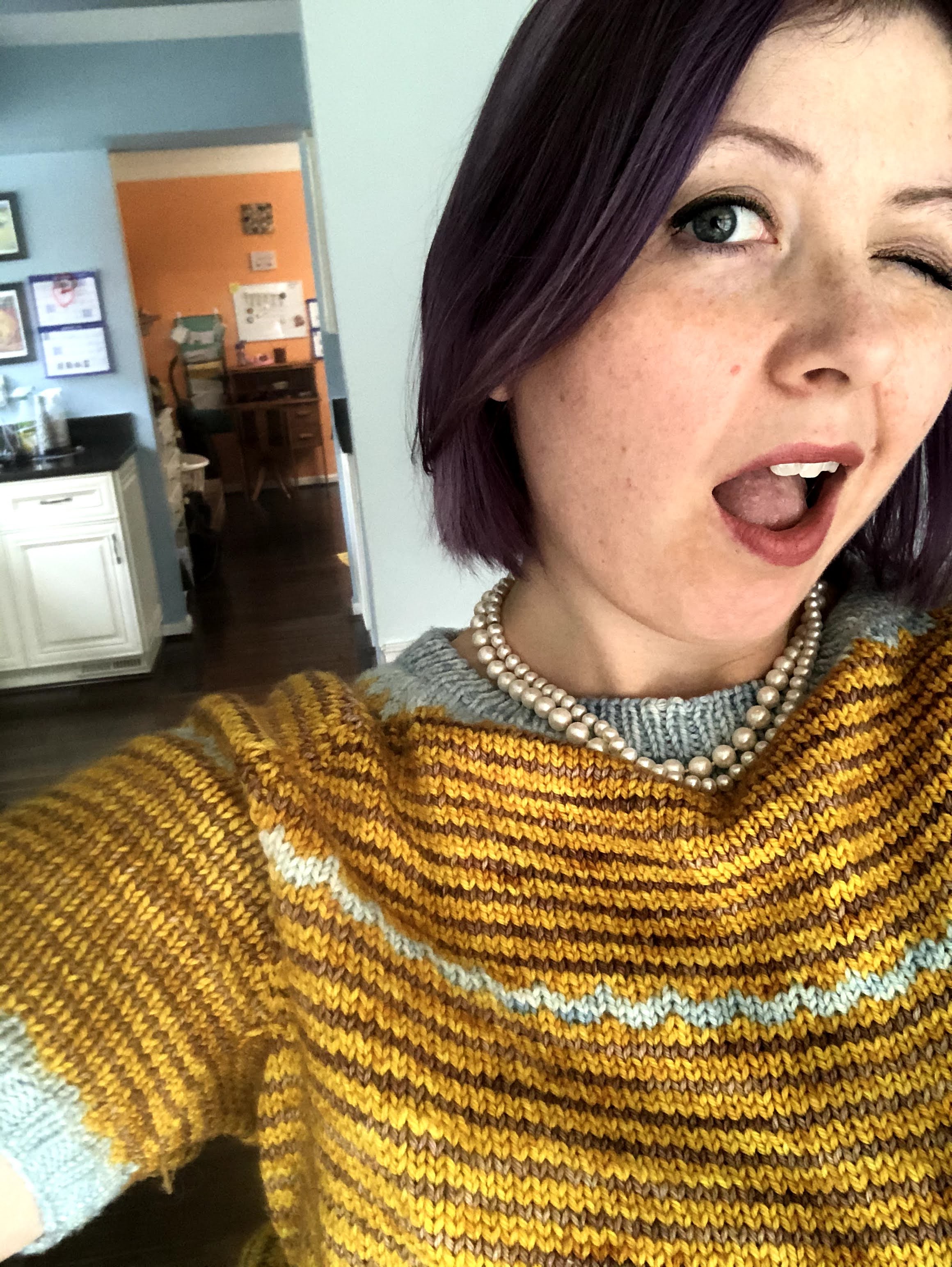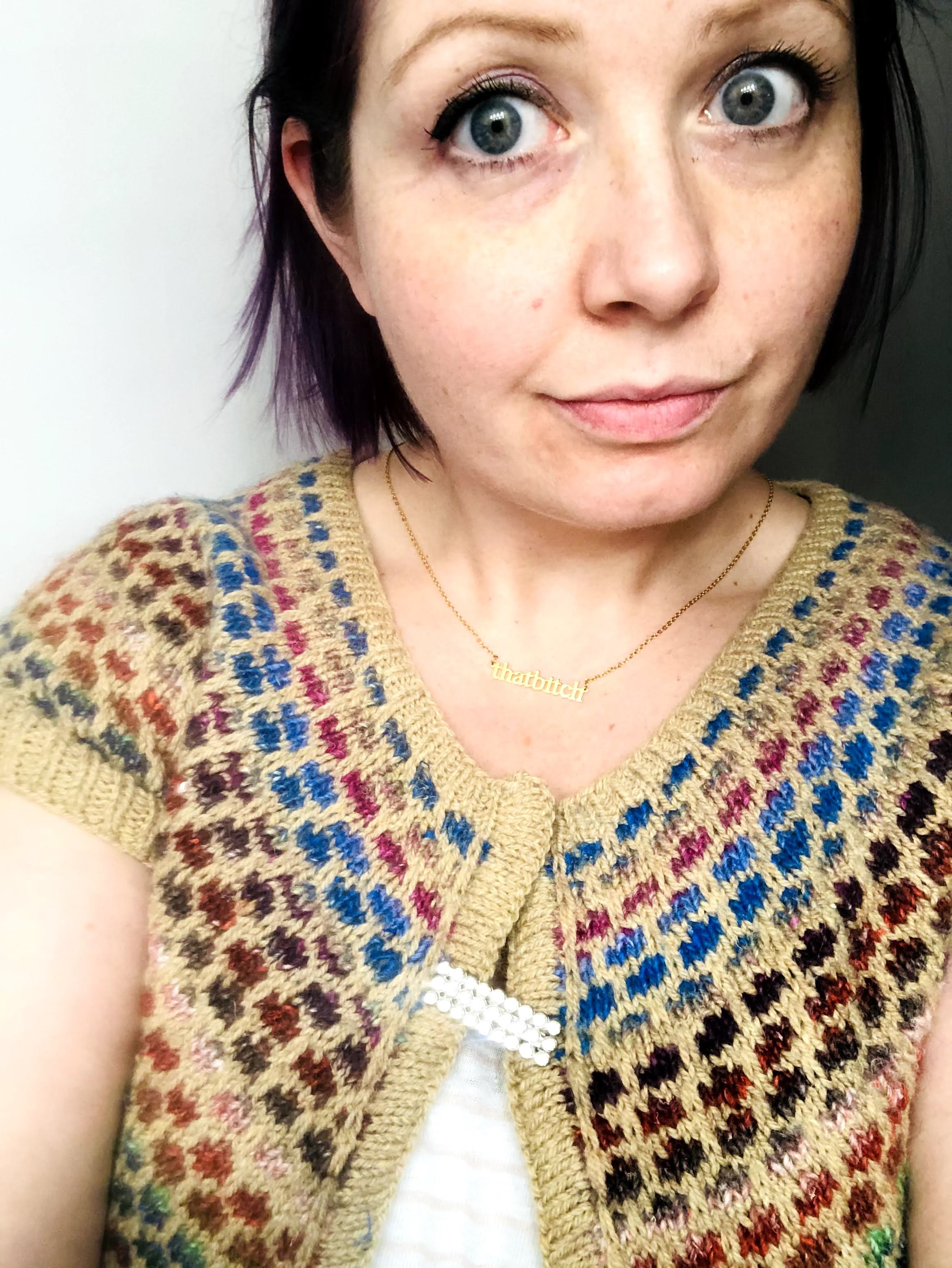As a side note: I don’t really use filters. Mostly just if color correction of my yarn is needed. I try and find the best natural light, and if I waited until 10 pm to snap the picture, I break out the ring light and hope for the best! Sometimes I wear make-up, sometimes I don’t. Even if I’m not leaving the house, I got dressed 30/31 days. I barely made a dent in showcasing my yarny wearables.