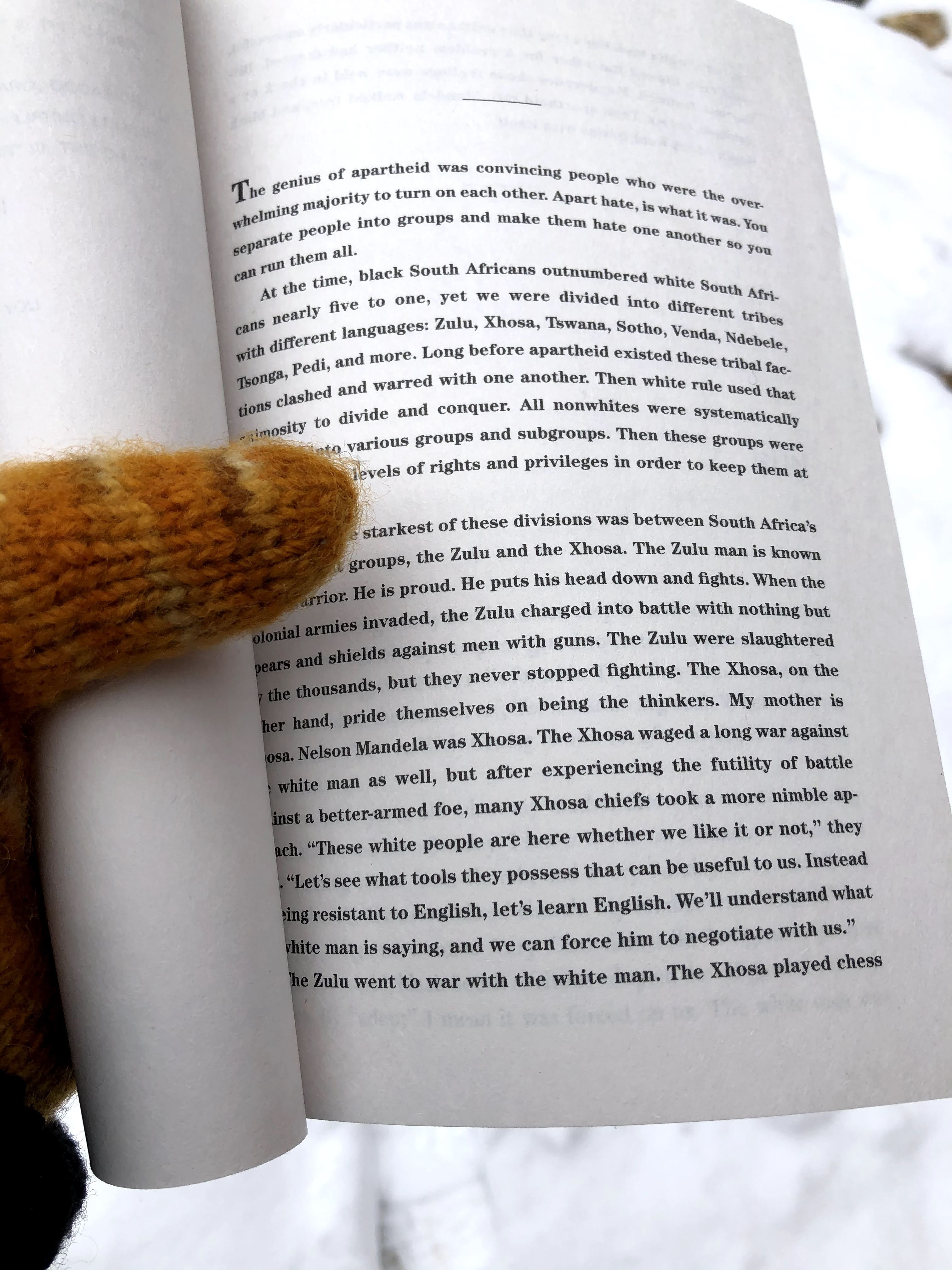 After the kids finished up school, we headed outside. I was just out there to supervise, I was not interested in getting wet and snowy today. I finished up all my portable knitting projects. I didn’t want to cast-on anything just yet. BUT I did have a book to start! Bundled up and out the door we went. I started Trevor Noah’s Born a Crime. I’m only 3 chapters in. I didn’t want to put the book down to write this blog. But I didn’t want to have another day pass without getting a post written.