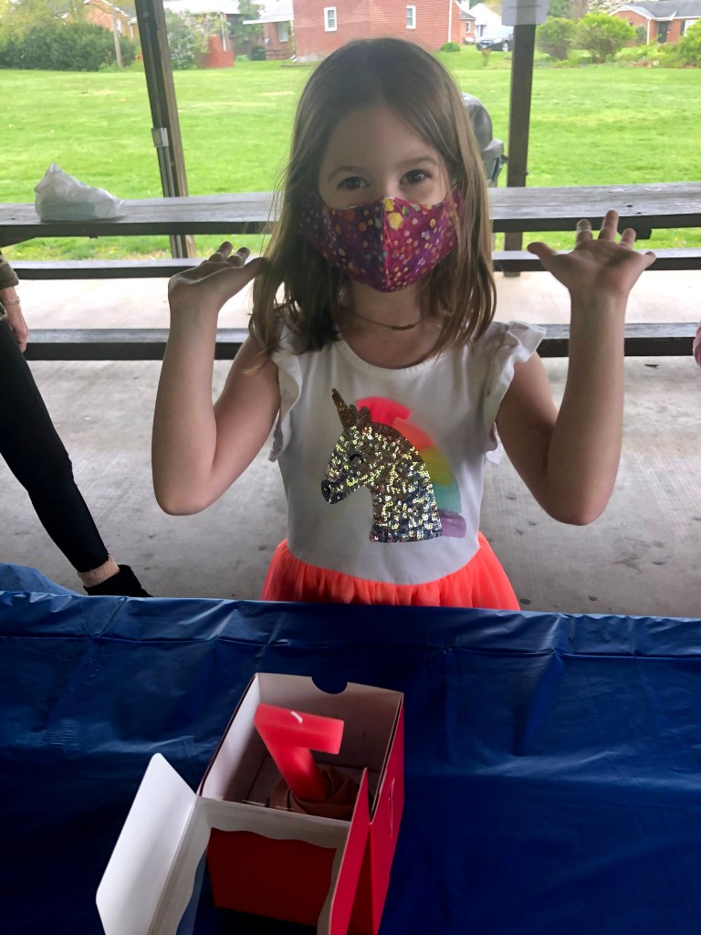 Throw in a birthday today for my oldest, and my parents are up for the weekend. Both of my parents are fully vaccinated (and me and my spouse), so keeping my mom away any longer is impossible. We had a party for 7 kids (including our 2) at a nearby park- we even made reservations for the (overly huge) pavilion! My daughter got to see friends she hasn’t seen in over a year; she was elated. We asked all her friends to “bring their wheels”, so they could all bike, and skate, and scooter around on the little trails and walk-ways. They mostly just played on the playground. This year, I got smart. I decided to hire out the cupcake baking portion. I picked them up from a local, woman-owned bakery café this morning. I love making my kids’ cakes, but this year I thought this was easier. And I had each cupcake individually boxed. We had lunchables, juice boxes, and individually packaged chips for snacks (because playing hard makes you hungry!) and water too. Individually packaged snacks are a waste producing nightmare, but I’m going to forgive myself.