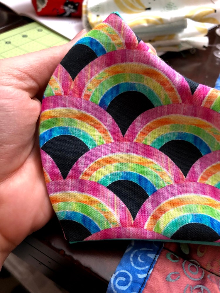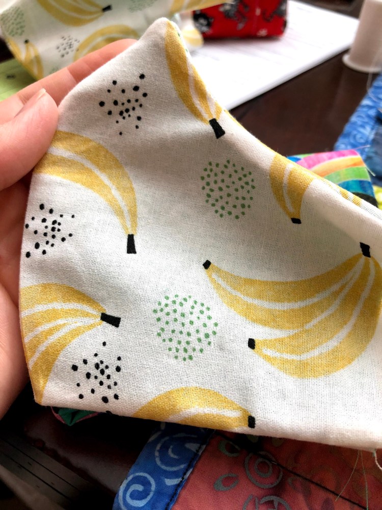 You would THINK I would be a super pro at making these masks, having made SO many of them (a hundred of this style, at least). Alas. It is still slow going. Nothing is perfectly lined up. Or perfectly symmetrical. Guess I’ll just keep practicing, and then when I get better, change my sewing features to Mediocre Seamstress Adventures!