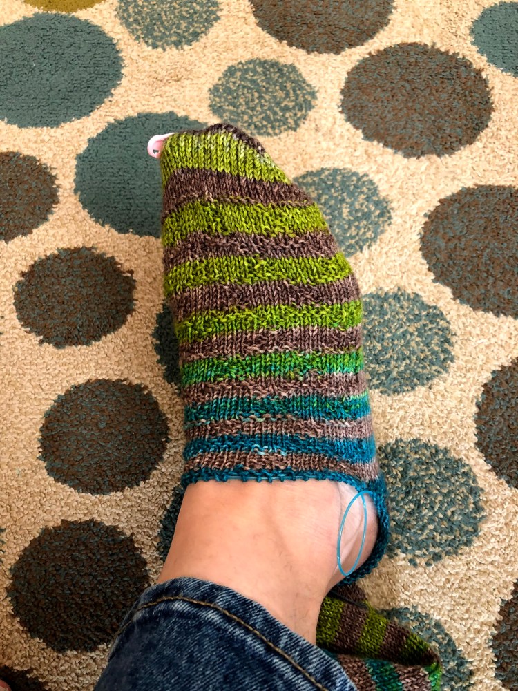 I really love the top! Did you fade different yarns or is it a large yarn repeat? I love the socks you’re working on too, that self striping is so satisfying.