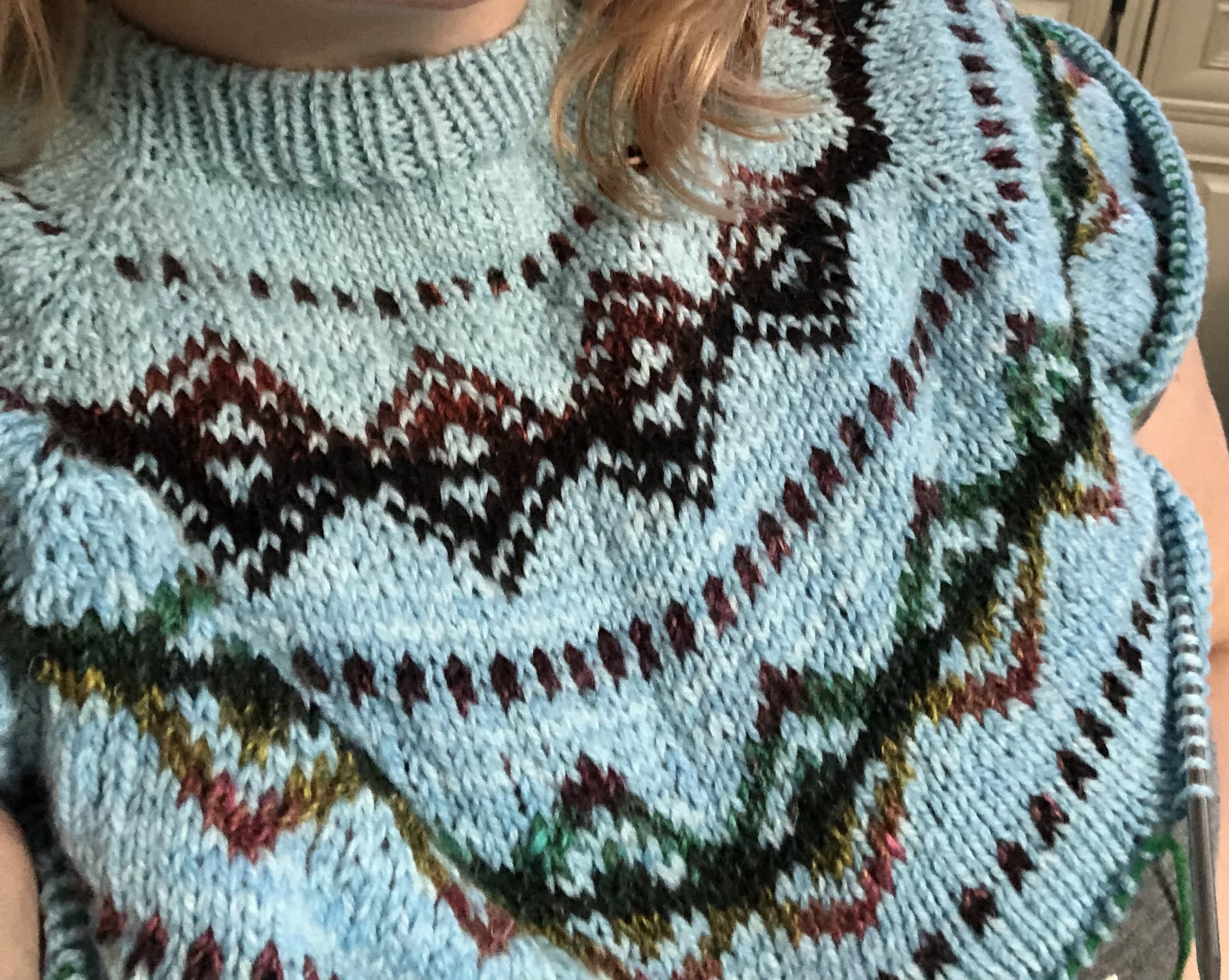 This project is taking up most of my creative time. Soon it will be too large to be portable, and I’ll need a small portable project to work up at kids’ activities and while on the treadmill at the gym. Likely a hat.