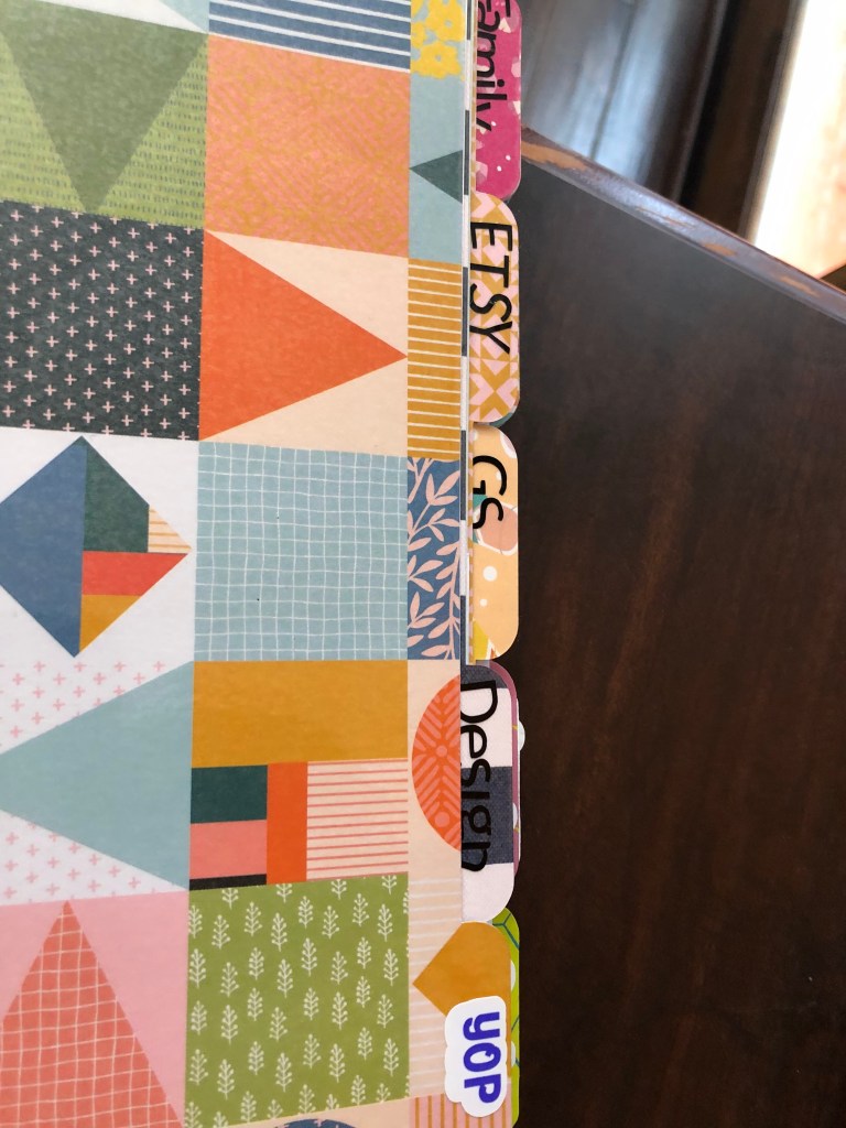 I also made some stickers to add to the tabs of my planner. I think they are neater than the individual vinyl letters I hand placed. I didn’t waterproof them or seal them. If just printed and cut doesn’t work out, I’ll remake them and call it research. Additionally, I’m not 100% sold on the fonts and the white background. The cut files for the tab dividers are from someone… I never saved the link in my Pinterest and now I can’t find it. Doh!