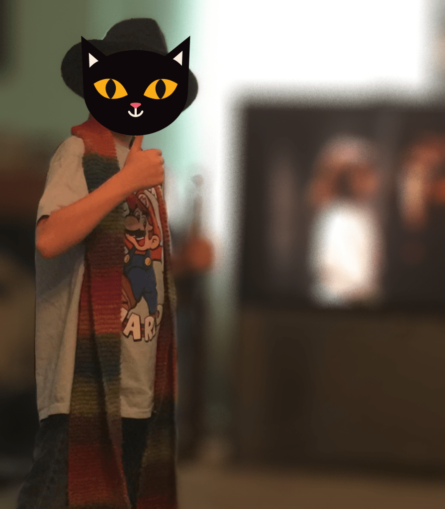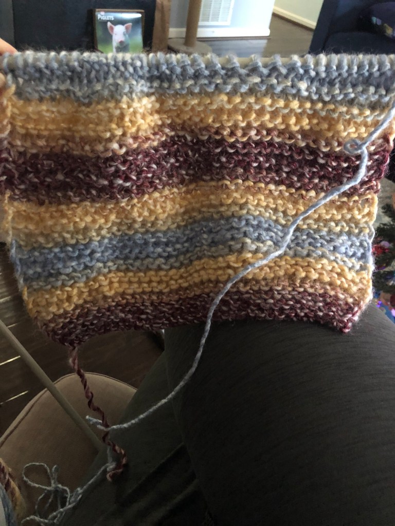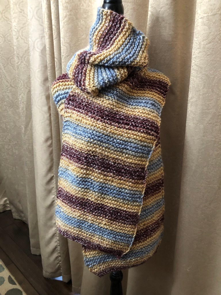 Once upon a time, about 10 years ago, I knit my “nephew” a LONG Dr. Who style scarf. It was huge, for a little kid. And he has been wearing it faithfully every winter since. Well, as time passes, children have this habit of growing into teenagers (***GASP***) verging on ADULTHOOD!! Now the gigantically long scarf of a decade ago is insufficient to keep an almost grown-up warm. ENTER the heroine!! I used a single spun acrylic for plushness, ease of care, and economics. I purchased the yarn on sale at Joann Fabrics in late December of 2022.