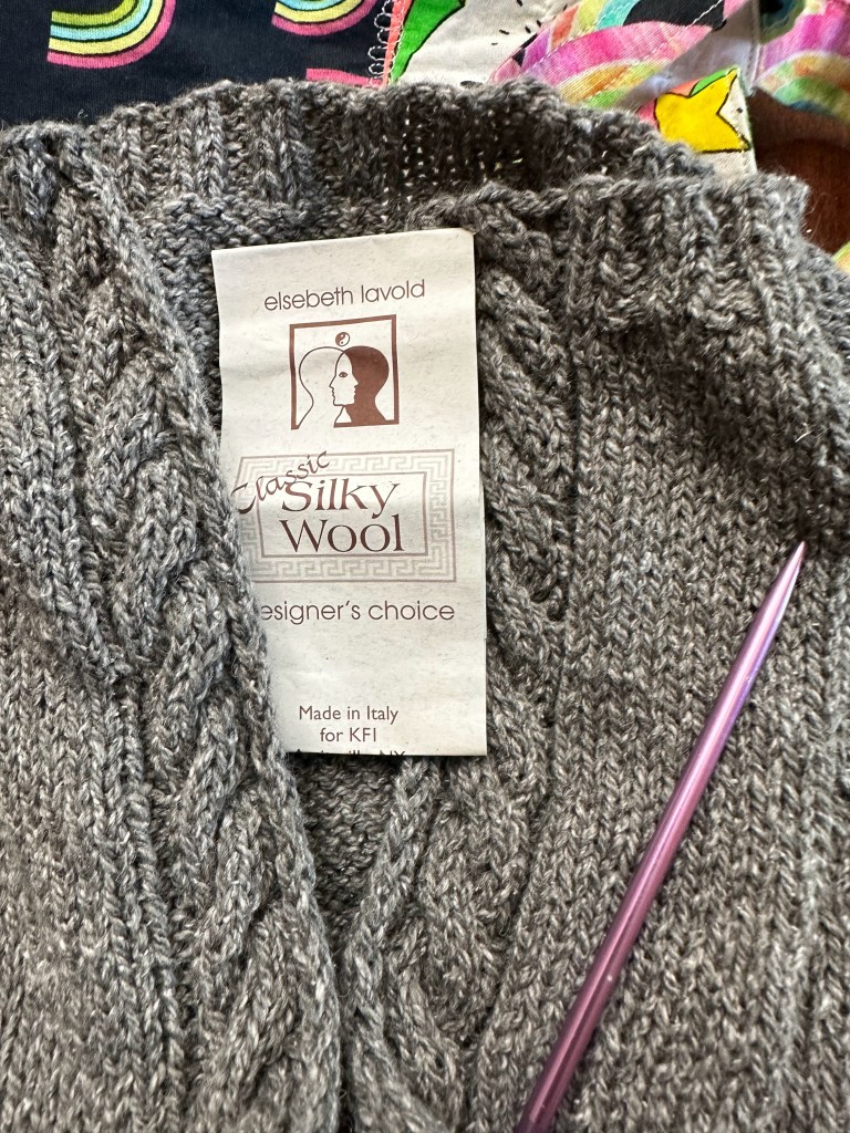 Current Projects: Yes, I’ve already set myself up for success with my knit 3 sweaters and one is already on the needles. Pattern: Split neck raglan with cables flanking split. Size 6 needles. Yarn: Classic Silky Wool by Elsebeth Lavold.