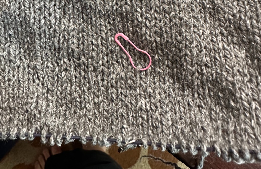 I almost didn’t bother with a YOP update on my Stormy Skies sweater. I finished the 2nd sleeve, and started the remainder of the body with the last full ball. Baring catastrophe, I should finish up this week (so my week 7 update SHOULD have a FO). I didn’t take a picture of both sleeves, but took a snap of the body progress on Sunday.