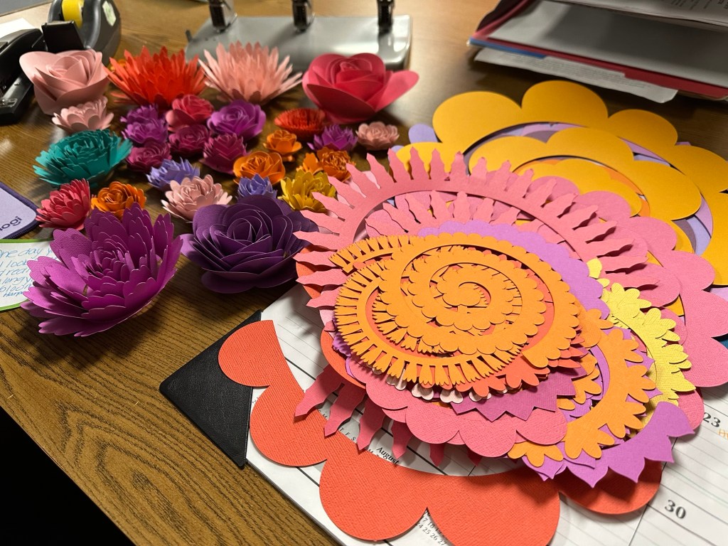 Lastly I’ve started to work on my bulletin boards for the office. I rolled a bunch of Cricut flowers at work the other day. Need to hot glue them before I can add mounting squares. Next week.